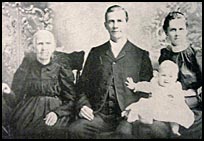 The three Bowser children, standing, left to right, Clara Scaggs, Philista Folke, and seated Thelma Holt.